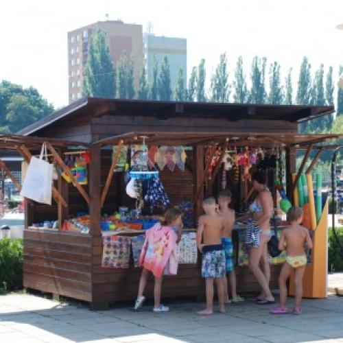 V areálu koupaliště je několik ploch k pronájmu pro umístění mobilního stánku nebo atrakcí.
